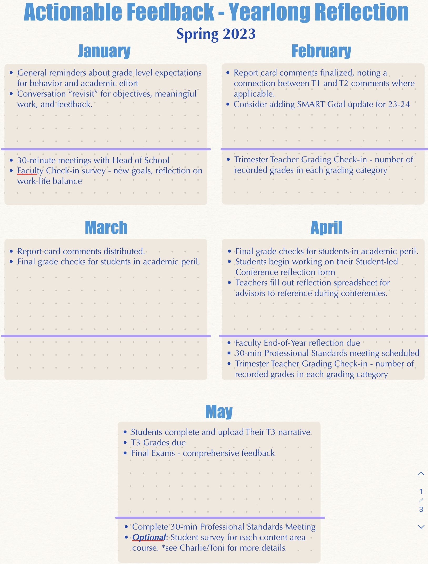 This post doesn’t go into the details of our process, but it was fascinating to review what we are currently doing and how we could improve this feedback process. I was particularly elated to see the engagement demonstrated by our faculty across the board. When building in the “one more” things, a school leader should be selective and intentional about what they ask of the academic team. Their time is precious, so any additional work must add meaning. For reference, here is a screenshot of the document which provides an overview for our actionable feedback over the course of the year. (Note that the document includes both student and faculty feedback).